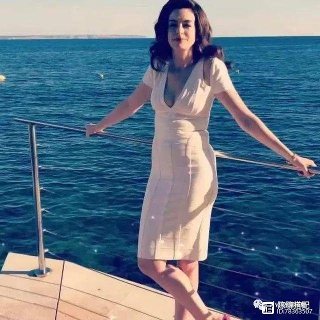 像下图这种虽然利用大V领的设计缩小了胸部,让上半身看起来瘦而不柴,保留住了丰腴美人的性感,但腰部的收紧设计却暴露了她腹部赘肉堆积的事实,让人难免产生一种“美而不足”的可惜,徒增叹息。