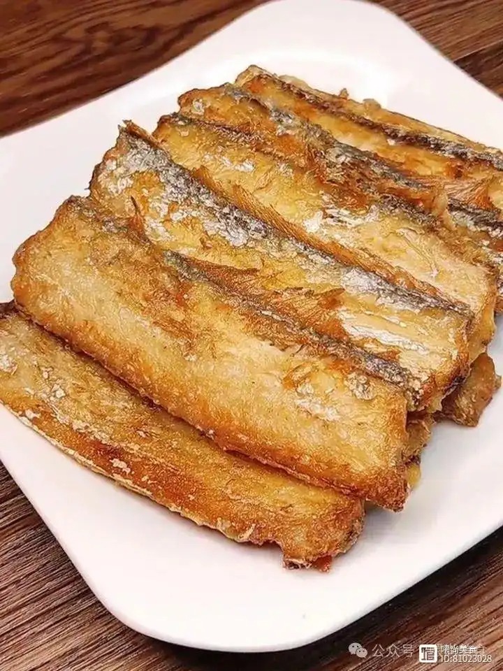 3、炸好后捞出带鱼段,用漏网沥去多余油分,即可完成。