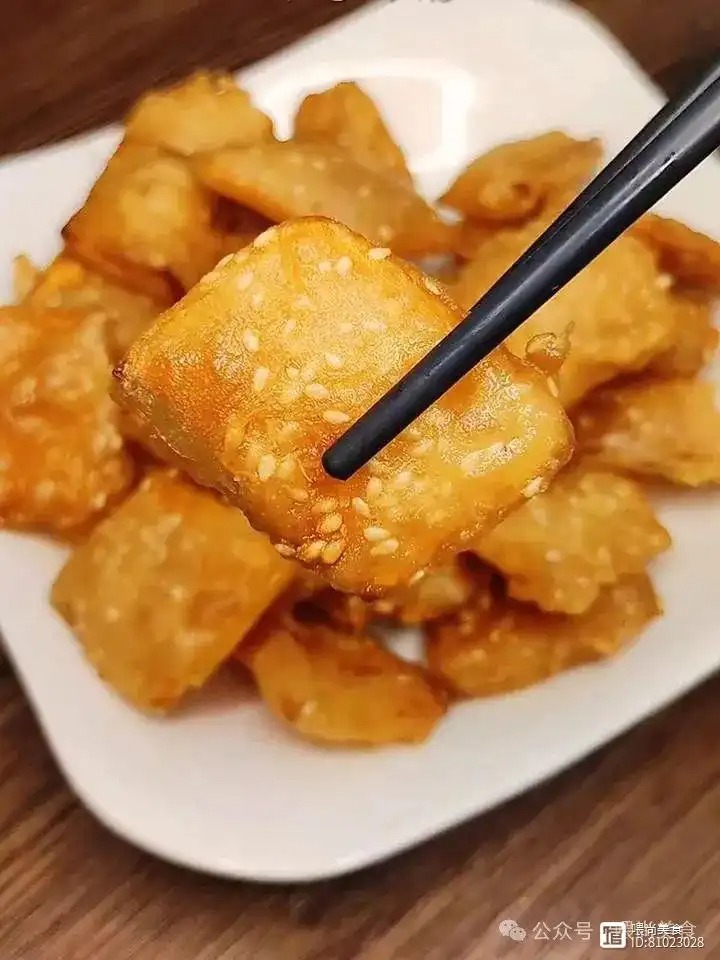 1、将南瓜切成薄片,裹上一层由鸡蛋、淀粉、水、盐以及白芝麻调制的脆皮糊。