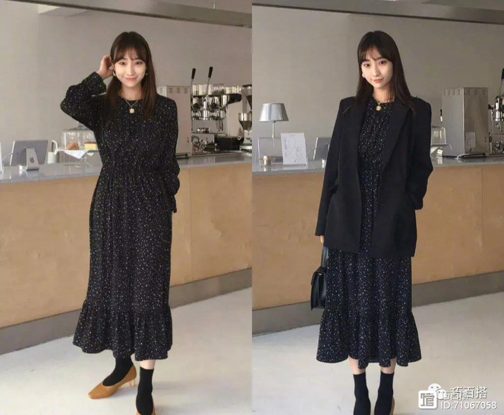 浪漫的波点碎花裙不仅适合春季的时候穿着,冬季作为内搭也是非常不错的一个选择。可以选择黑色系,黑色的百搭与神秘,可以让你轻松搞定搭配。