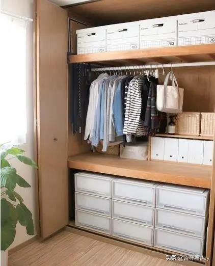 此时,不同尺寸的收纳盒就是很棒的选择,可以根据衣橱的进深和高度来选择,不同大小的收纳盒还可以自由堆叠,抽屉式设计非常方便衣物的取放。
