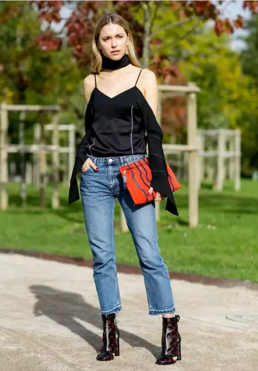 前阵子最冷的时候,社交媒体上经常有:《妙龄少女学韩剧,大冬天露脚踝冻伤》之类的新闻传播。下面一片“感同身受”的评论,冒这么大风险都要露,还不是因为:露出脚踝才能显高显瘦啊!“适当露肤”本来就是显瘦的黄金法则,露出的脚踝不但拉长了下半身的线条,更改善了全身的比例。此外要提醒各位妹子不要以为只有窄脚牛仔裤短一截才好看,上一年大为流行的阔腿裤,变成九分长度,同样非常时髦!