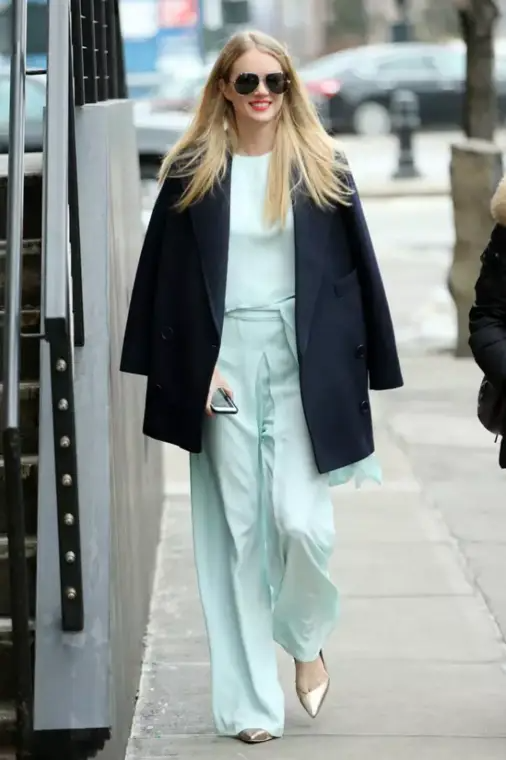 同色系作为最时髦的穿搭方法之一,用阔腿裤来进行演绎再恰当不过。
