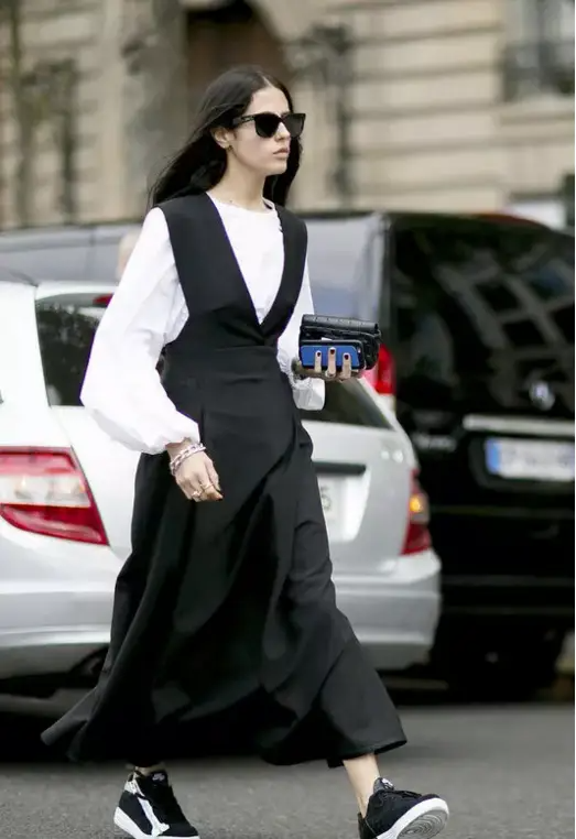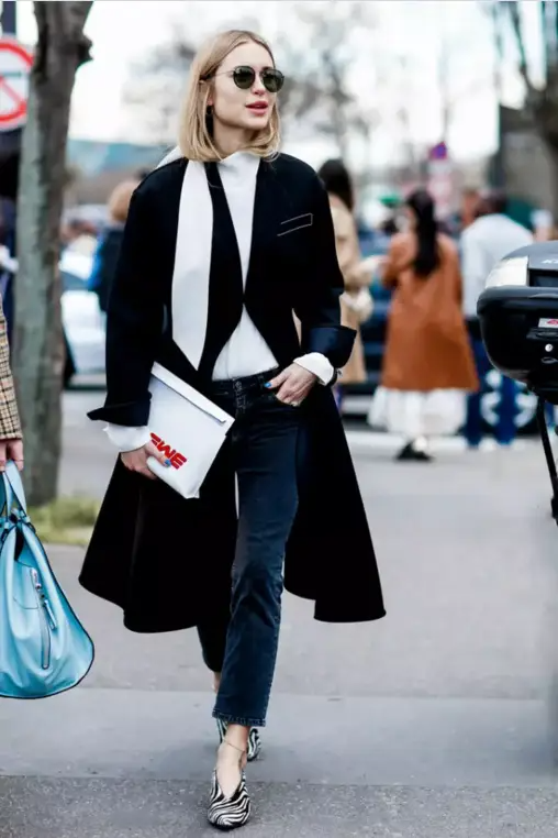 那些花大价钱买的长靴已经完成了它们的使命,再不舍,春日也别再穿了,搭配轻薄的春装,只会让你显得头轻脚重,下半身无比“扎实”。春日鞋款的正确打开方式是各种轻盈的尖头鞋,无论是高跟的还是平底的,小尖头都能让腿部线条得到延长,这里再教大家一个办法,选择与裤装或裙装相同的尖头鞋颜色,让下半身在色调上统一,腿就能长出去几厘米。或者干脆穿一双裸色的尖头鞋,鞋子与双腿合为一体,顺其自然地拉长并修饰了腿部线条。