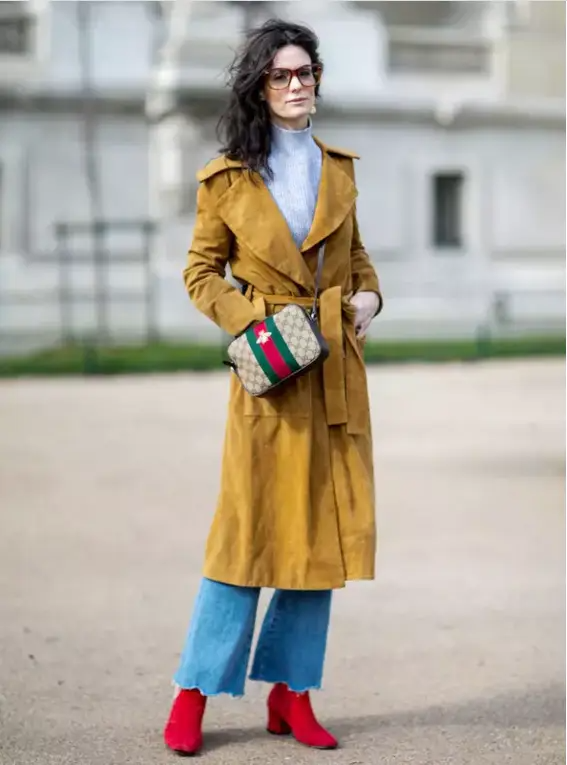 风衣+阔腿裤=拖沓?系上腰带就不会!记住风衣的腰带系法一定要“轻松”才“时髦”。时尚博主Hedvig Opshaug这一身的撞色趣味感十足,却不显突兀,不愧是时装精的段位。