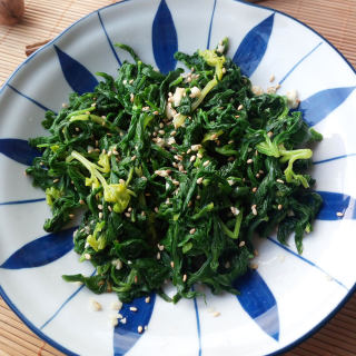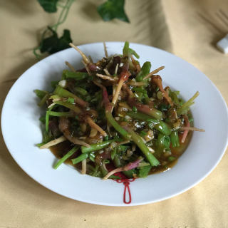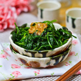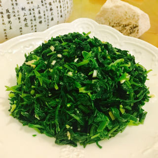 原料:菠菜根、蚝油、葱花、蒜末、食用油、淀粉水、盐。