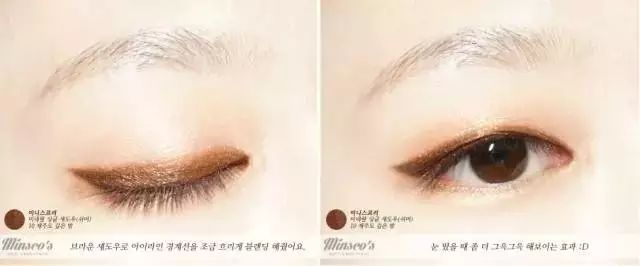 而对于单眼皮就很适用,跟单眼皮画眼妆眼线是一样道理:大面积打底+睫毛根部颜色深。