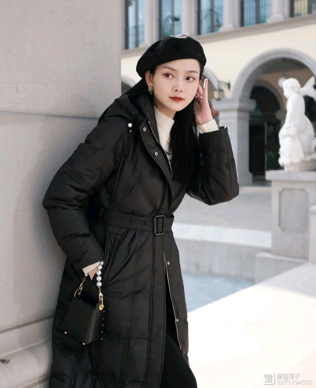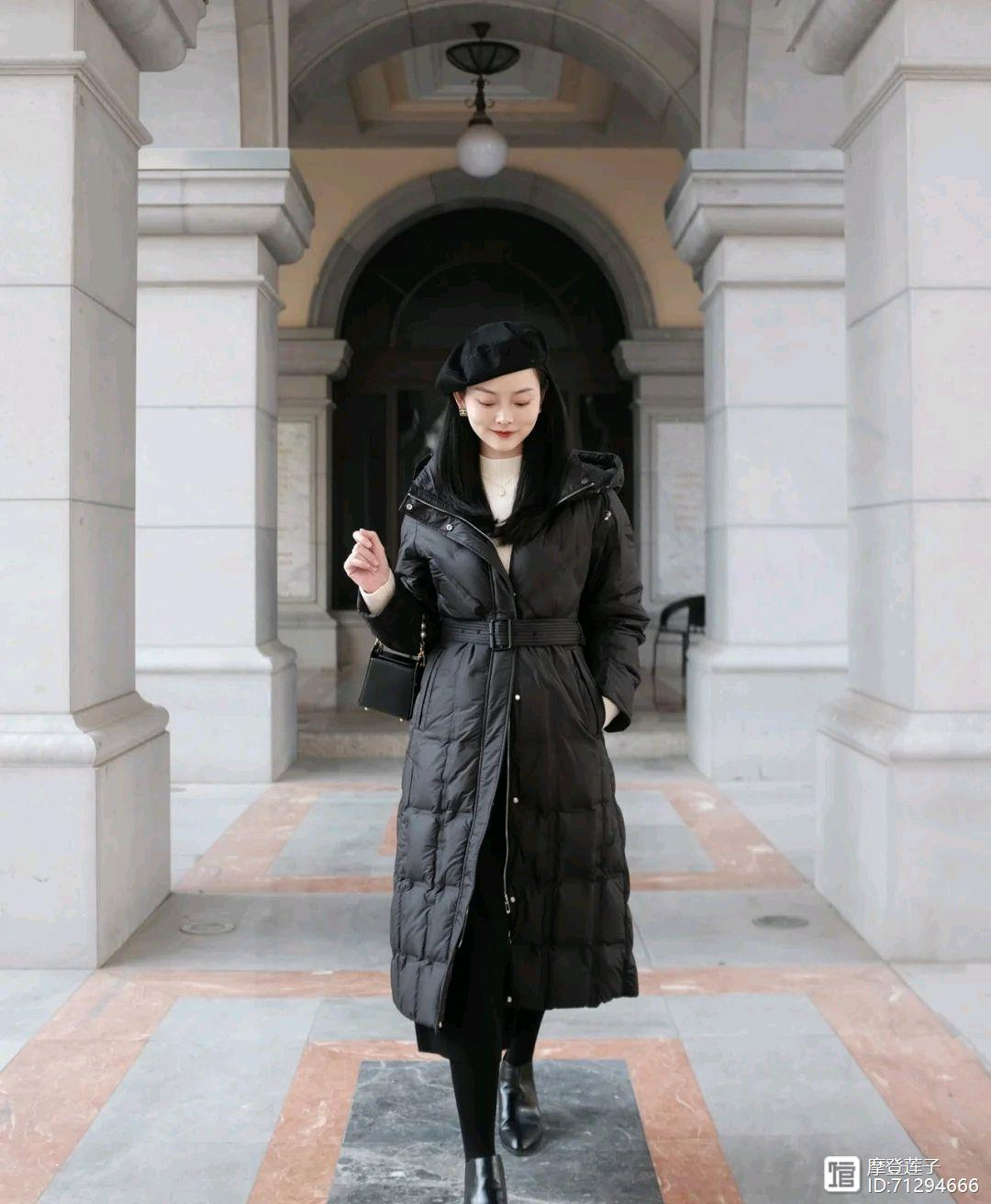 很多女生都会认为穿上长款羽绒服显胖,其实只要选对了款式,不仅显瘦还很好看,就像这位时尚博主所穿的这件羽绒服就采用了收腰设计,并且是以黑色为主,所以穿出来的视觉效果会人一种沉稳大气又显瘦的视觉感。