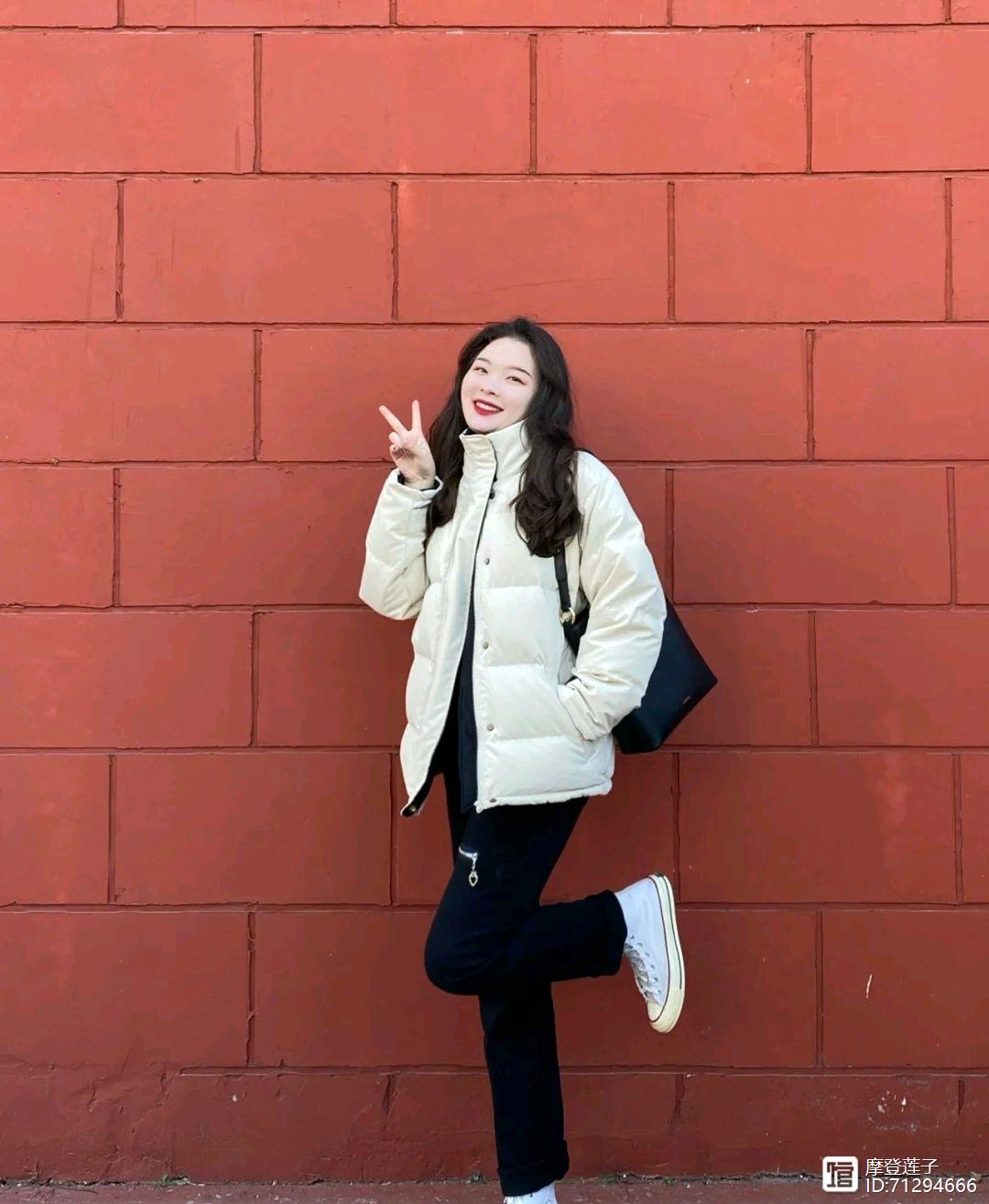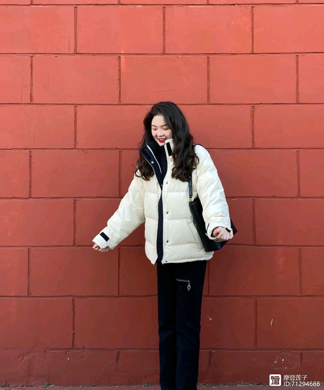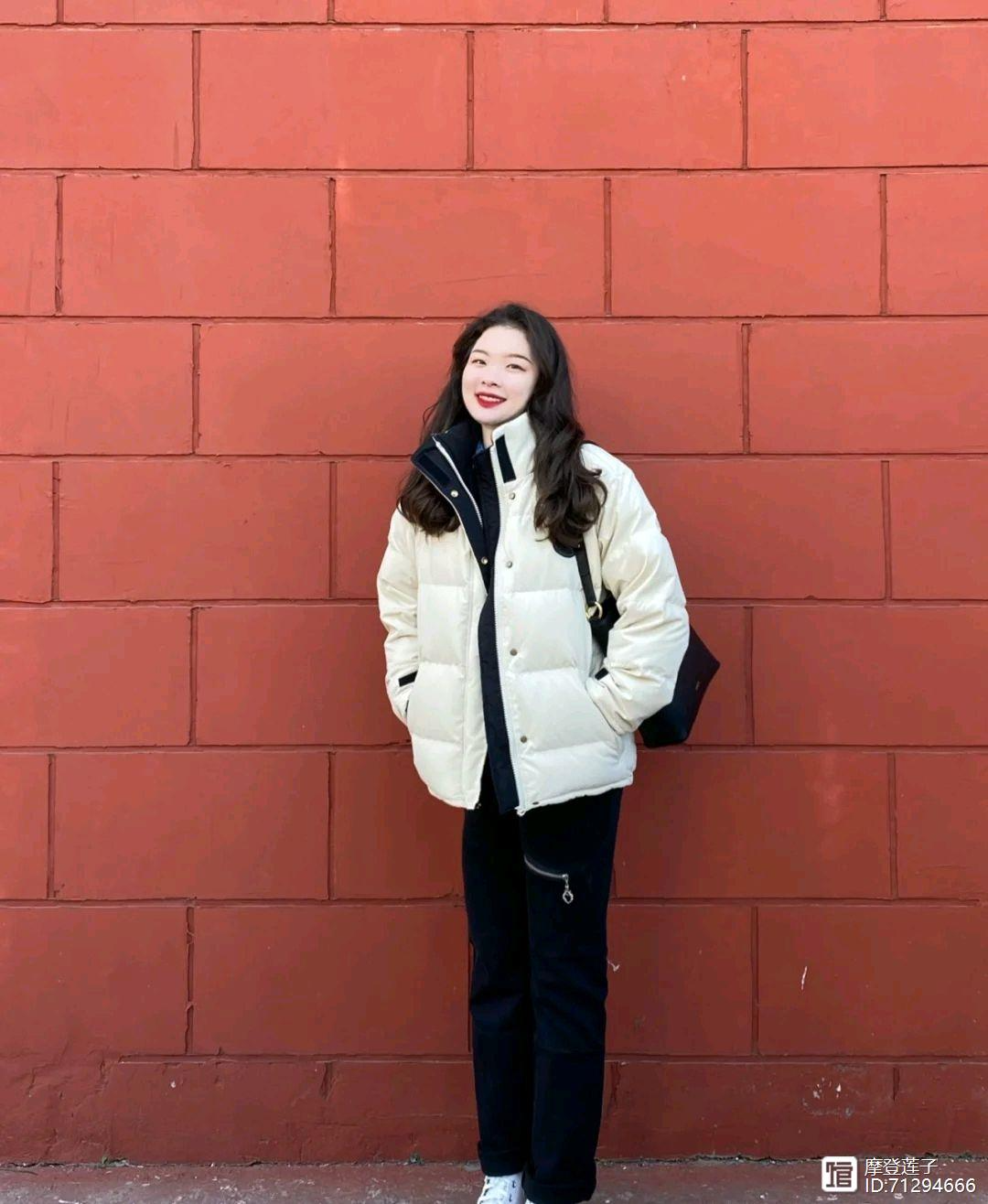 所以说,日常穿搭不知道穿什么的女生,就可以像这位时尚博主一样,选择短款设计的白色羽绒服搭配黑色直筒裤,既保暖又耐看还很显瘦。