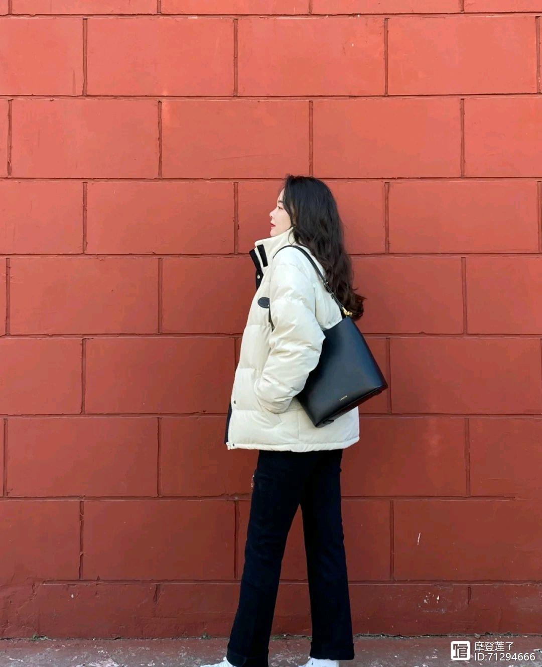 但也要注意穿搭细节,当身上所穿的羽绒服和裤子都是比较简约的情况下,不要忽略了其他的时尚单品,比如说脚上所踩的鞋子,再比如说要选对合适的挎包,才能让整体穿搭造型看上去更有时尚感。