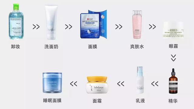 PS:贴片式、水洗泥状面膜都在洁面之后用,用完需清洗再进行下一步的护肤。睡眠面膜用在面霜之后,一周2~3次,建议在6~8小时之内清洗。