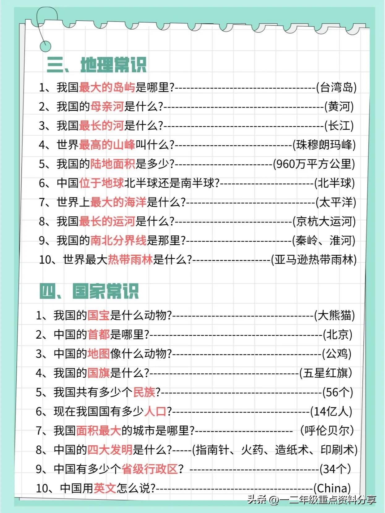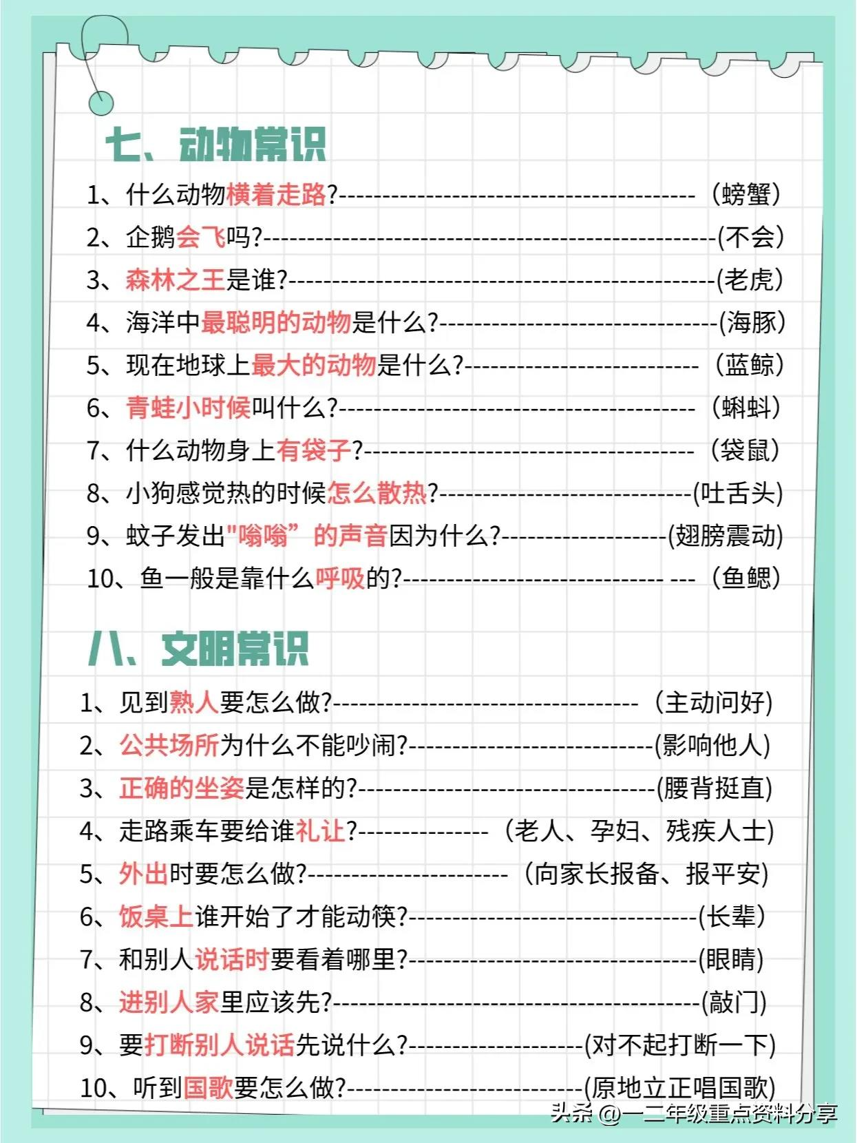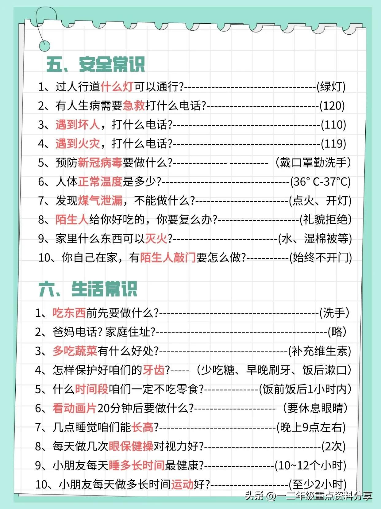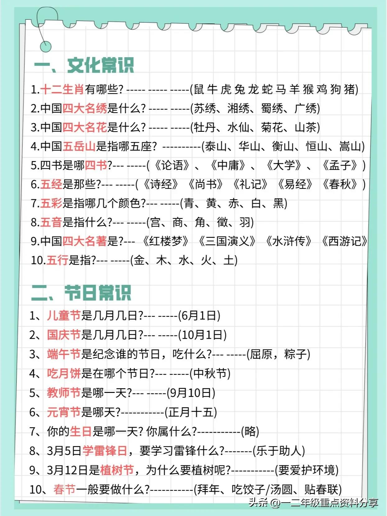 一二年级重点资料分享