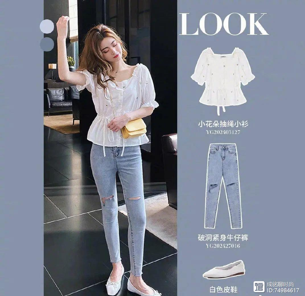 小腹部有肉肉成为很多青春期女生的困扰。这种上衣具有很好的遮肉性,但如果腰部赘肉过多也会形成微胖的缺陷,她的这款小上衣在胸前点缀了一些小配饰,让白色的服装变得不那么单调,下身搭配修身破洞牛仔裤显高又显甜美。