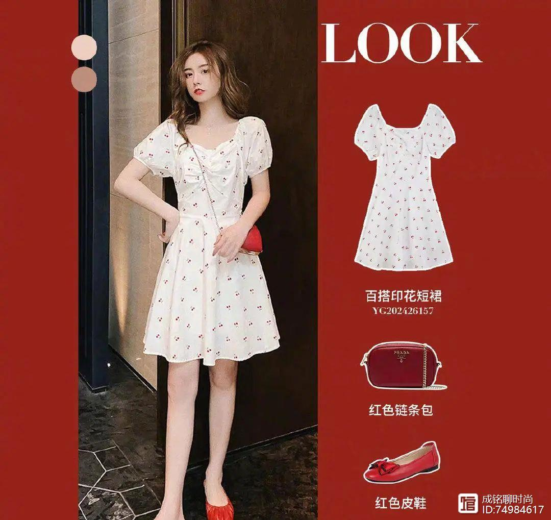 白色为底色的衣服很考验女生的气质,如果当天没有心思画精致的妆容,尽量不要去选择这种格调,把眉眼画得很精致,采用甜美的暖色调妆容会与白色的服装更加相配。她的这款衣服上加入了红色的小碎花,让白颜色不会那么单调,配上一款红色的链条包,减龄又显甜美。