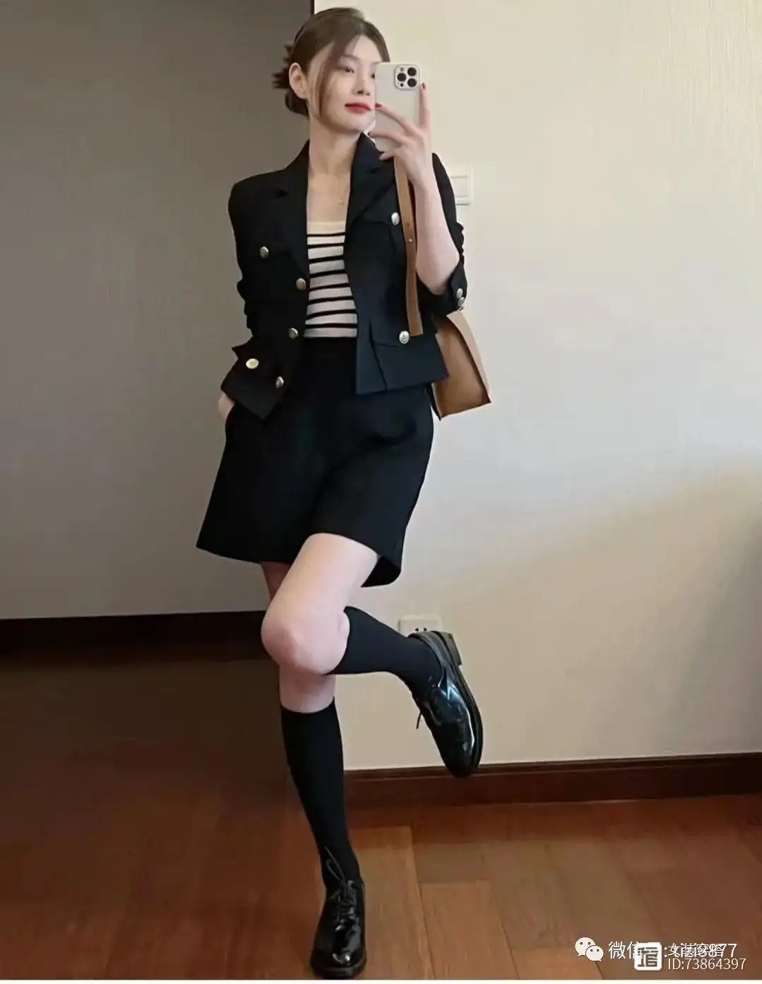 经典黑色初秋气质小香风,一套穿搭配上长靴,诠释秋日氛围感,精致和优雅都恰到好处的短外套+短裤设计秋天第一套满分期待的通勤穿搭,周末约会日常也好穿!