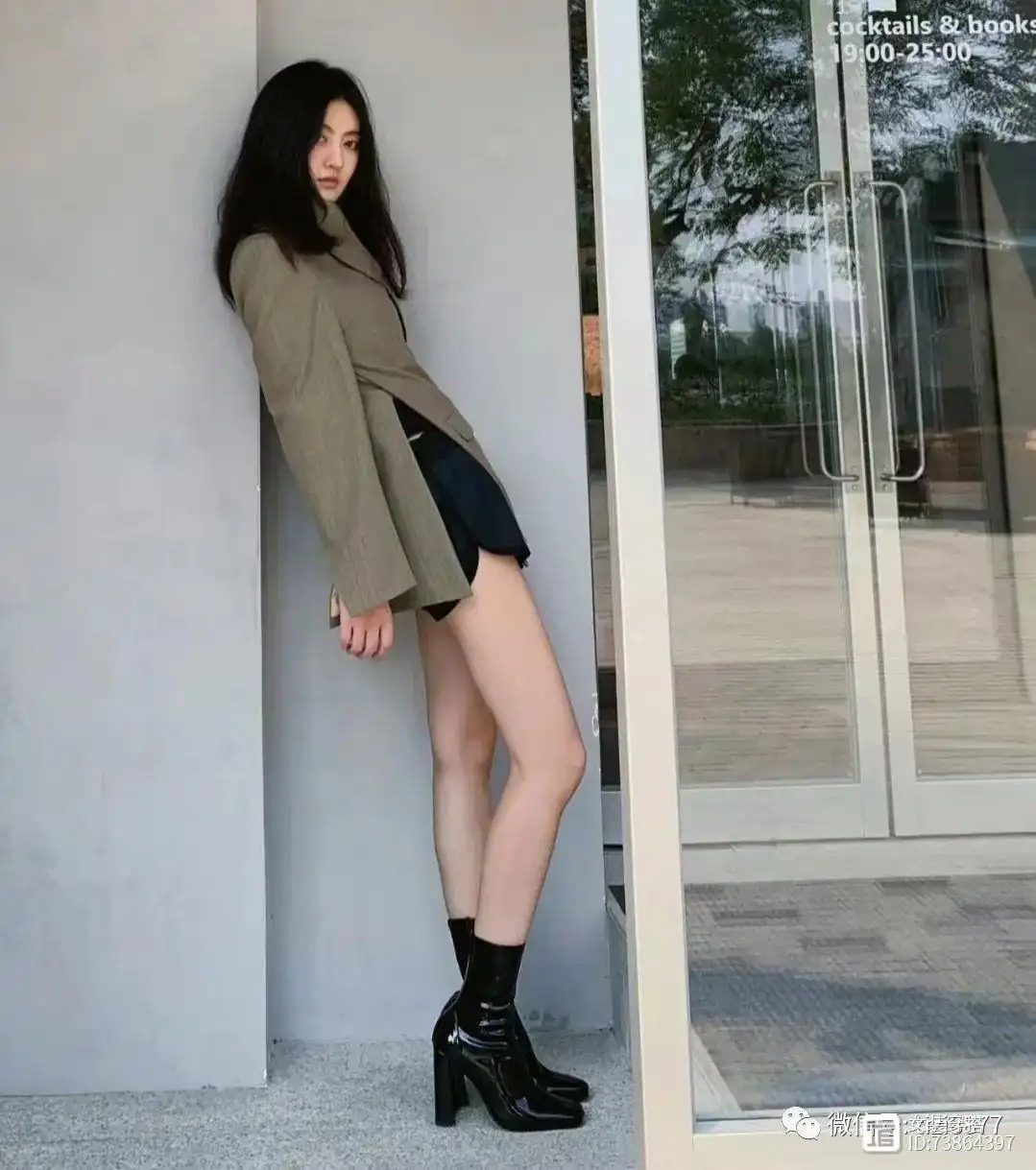 新买的靴子款式简约好看,脚踝设计是完全包裹的,配上廓形西装会显得腿又细又长!搭配个短裤,演绎秋天下衣失踪的时尚。