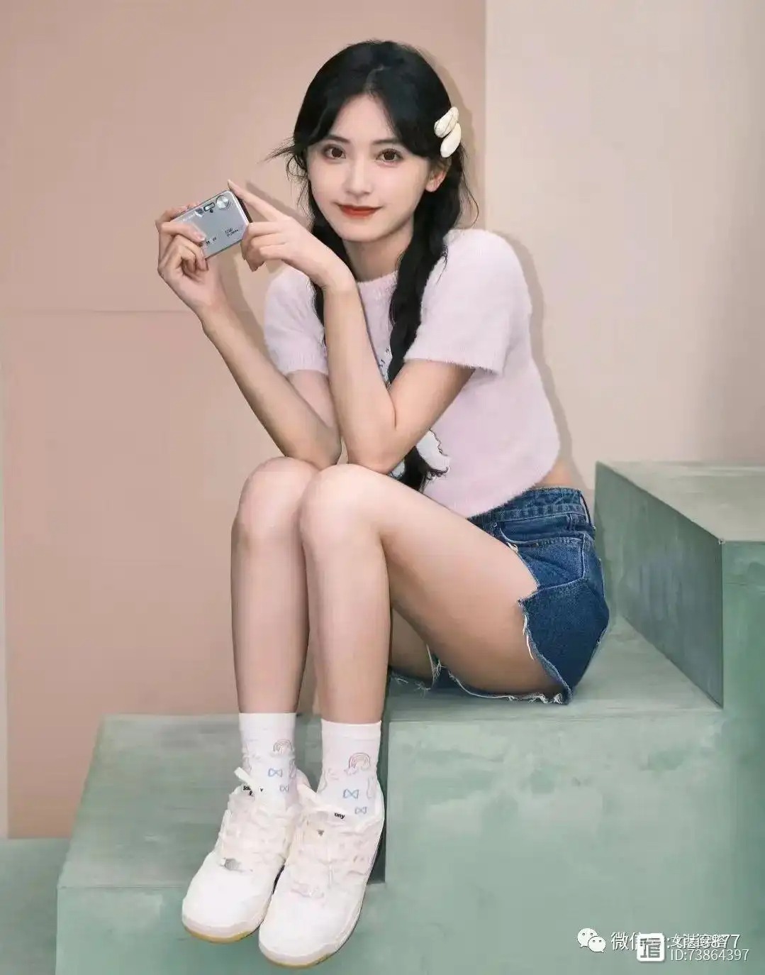 毛绒针织短袖超级嗲,粉色意外的好穿,小小发夹和长筒袜,这种超级可爱的小细节都很吸睛!热裤+榴莲鞋的搭配,简直是元气百分百!