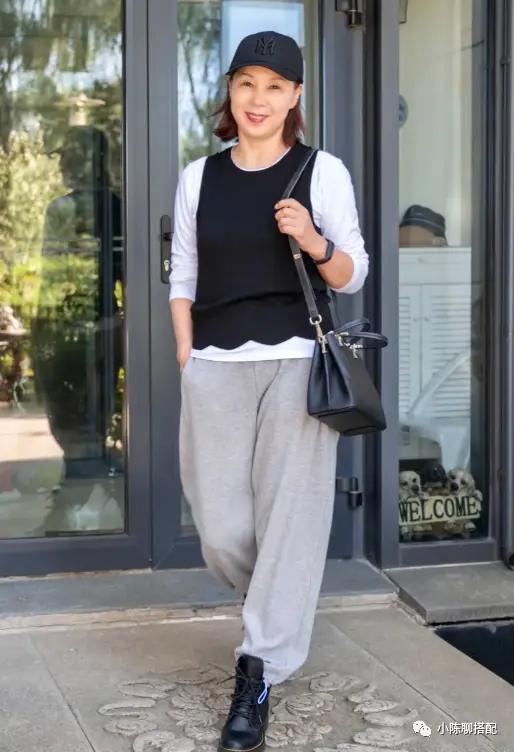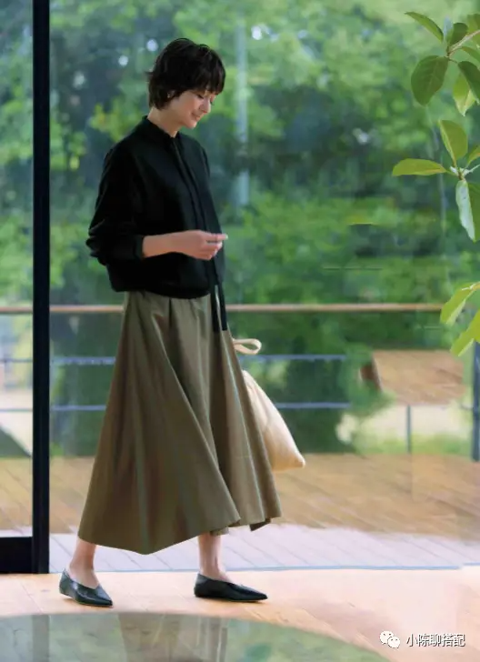 黑色是最能显瘦的颜色,但不建议大家使用全身黑色的搭配,很容易造成老气感,所以上半身用黑色,下半身用其他的中性色来进行搭配是比较合理的,只要稍微注意上半身的衣长就能起到收窄视线的效果哦。