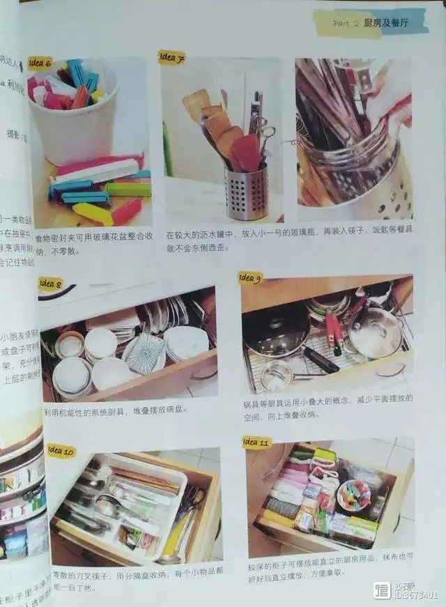 前面说过这本书从客厅、厨房、浴室、卧室、儿童房到书房,六大空间来分区,通过大量的实拍彩图来指导大家收纳整理。因此,除以上我们说到的客厅,厨房外,其他空间,书中都有整理的总体原则以及各个角落的收纳技巧,配以详细的案例,可以说,按照图中所示,我们就能够把自己的房子收拾得整整齐齐了。