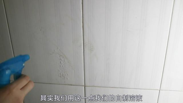 它的第三个小妙用呢就是,可以清洁我们卫生间或者是厨房,或者是洗澡堂里面的这一种瓷砖,这个瓷砖大家都知道,如果不长时间清理就会表面附着一层污渍污垢,而且导致这一个边边角角就会有发霉的现象,其实我们用这一点我们的自制溶液,这样清洗就可以了,