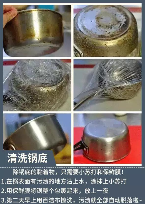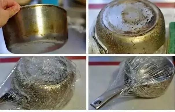 去除锅底的黏着物,只需要小苏打和保鲜膜!