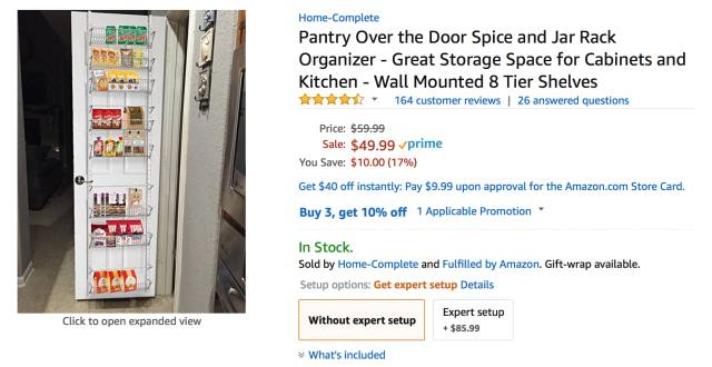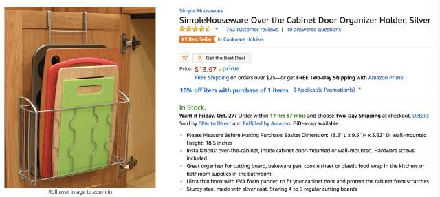 和上面一种类似的架子还可以反向挂在柜门上,充分利用柜子内部的空间。