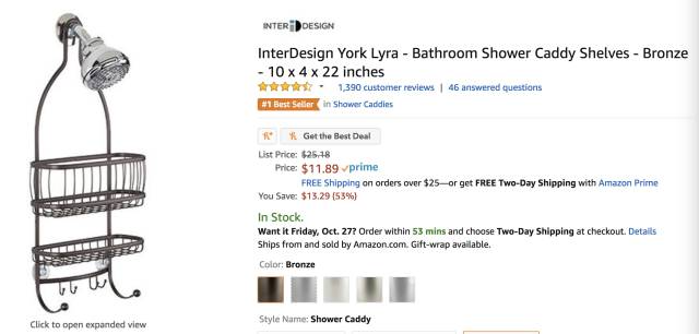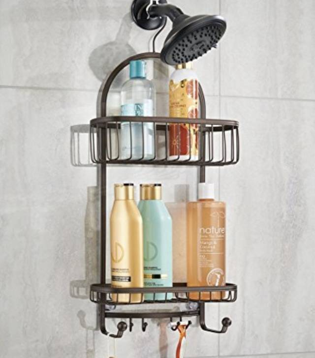 洗护用品全部可以容纳,下面还能挂上刮胡刀、毛巾等小件,关键是这个角度还不会被水淋湿,还不用在墙上钉钉子,完美!