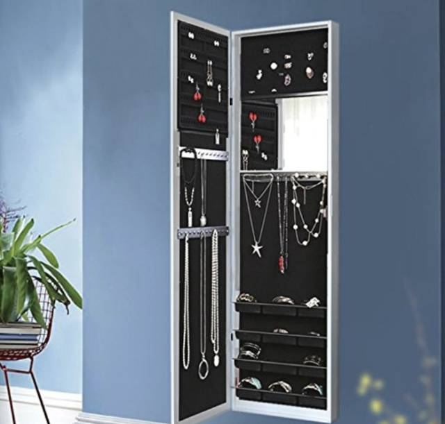 喜欢打扮又不想翻箱倒柜的女孩们有福了,一件物品两种用法,全身镜后面可以收纳,首饰和其他小物都很棒,收纳界的最佳代言。