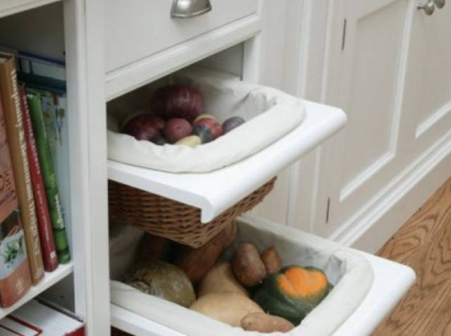 柜子之间或者墙壁之间有空隙,可以买个多层的推车,将那些可以长期保存的蔬菜等食品放到摆在架子上。