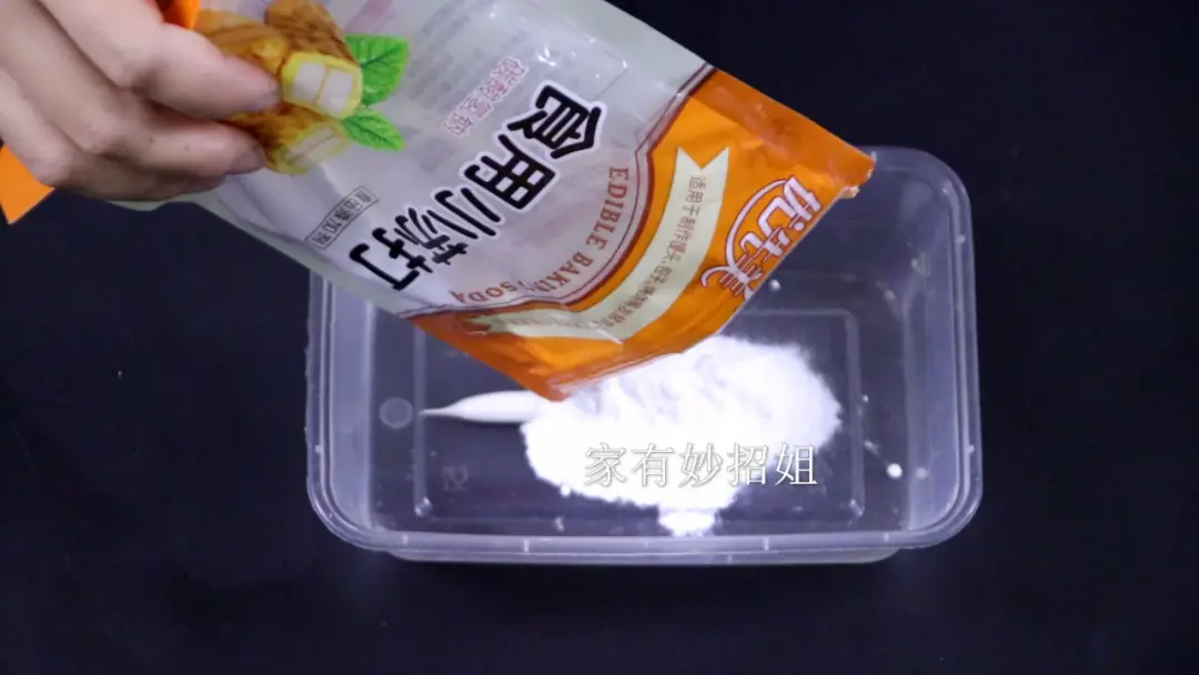 然后再往里面挤入一点洗洁精,和倒入一勺左右量的小苏打。牙膏、洗洁精、小苏打,都是我们生活中常见的物品,而且它们都有着很好的清洁作用,可以帮助我们将纱窗孔洞里面的污渍给清洁下来。