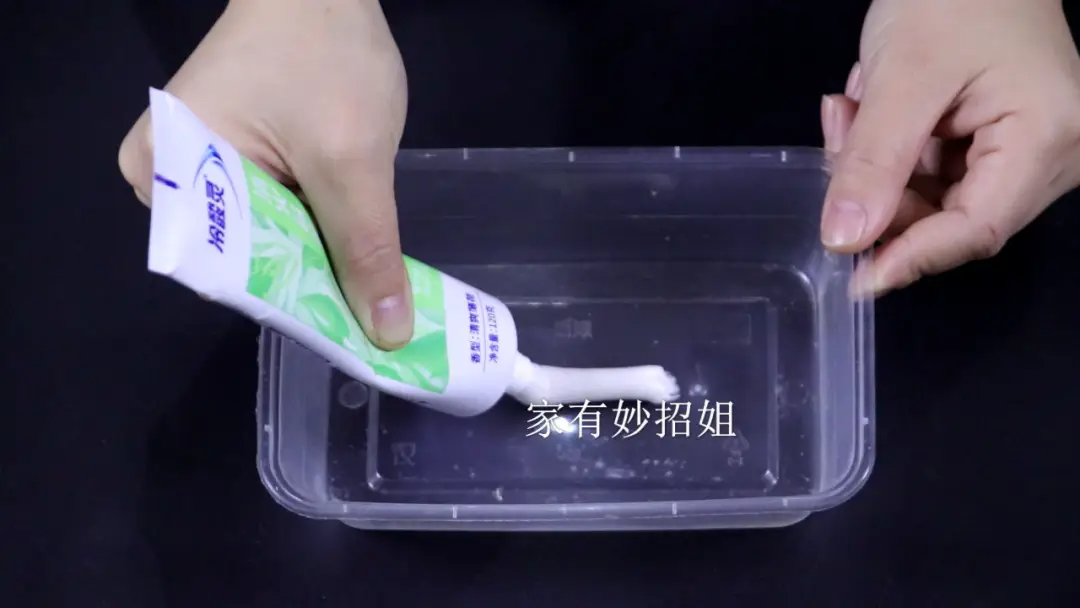 清洗纱窗的第一步,就是需要调制一个清洁的溶液。在纱窗上都是有很多小孔洞的,这些小孔洞就能很好的通风,但在长时间的使用过程中,孔洞中就会被堵塞不少的灰尘杂质,如果只是简单的清水擦拭,就很难将里面的脏东西给清洗下来,而我们调制的清洁溶液就能起到清洁的作用,帮助将孔洞里面的脏东西给清洁出来。具体调制的方法也很简单,我们就是需要准备一个不再使用的容器,比如平时吃外卖的打包盒,先在里面挤入一长段的牙膏。