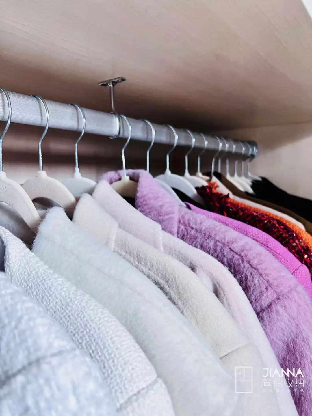 我创立简纳的初衷就是:生活就要简单一些。比如衣服的收纳就是能挂不叠,挂衣服有什么好处呢?看过去一目了然,方便拿取,减少叠衣服的步骤和褶皱。那你说哪些衣服能叠呢?像怕变形的毛衣、内衣、袜子、围巾、秋衣等。