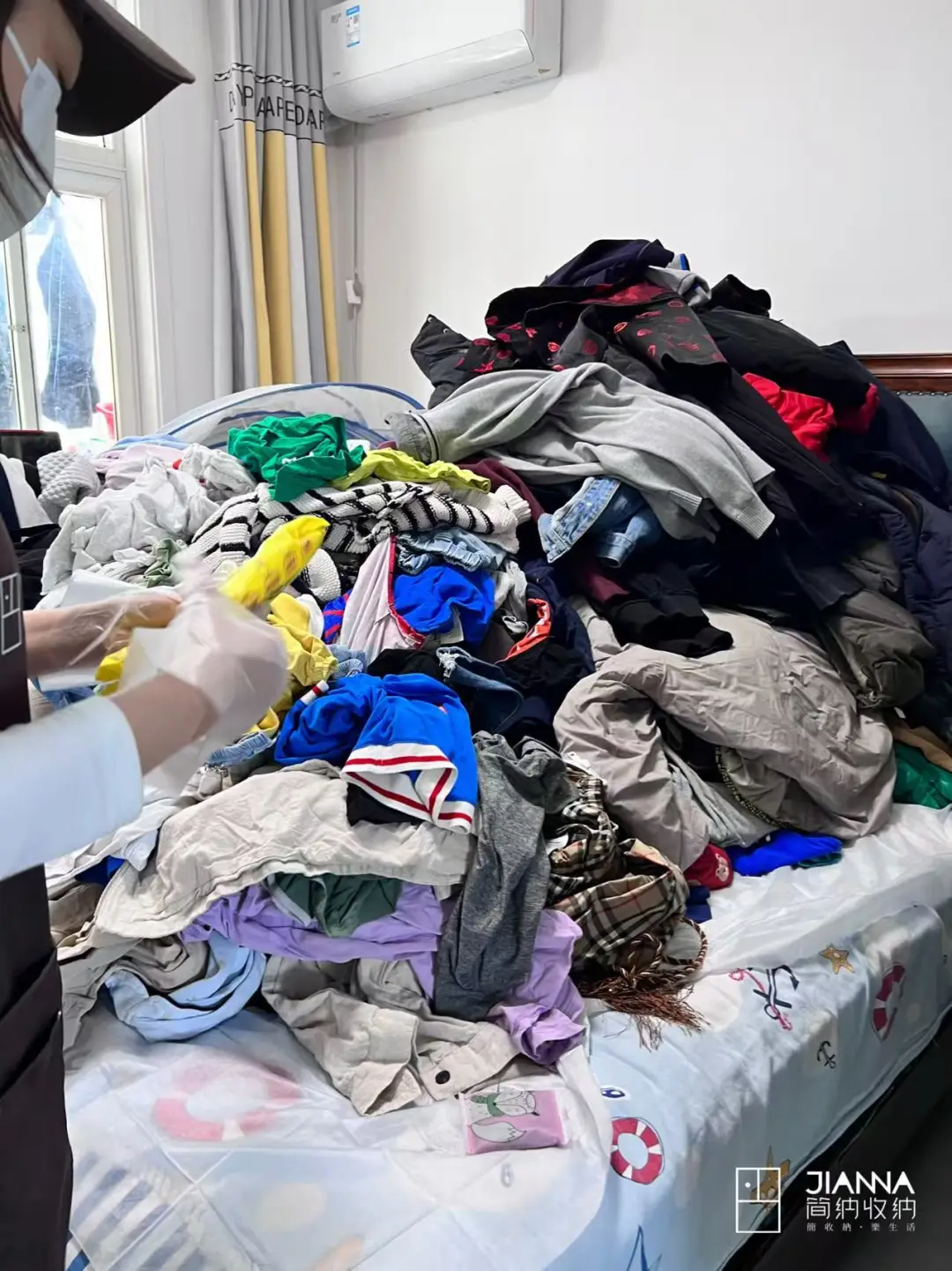 分类后留下来的该挂的挂,该叠的叠,断舍离的衣物该送人送人,该二手的二手。