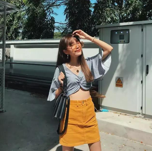 如果是不喜欢穿裤子的女生就可以选择包臀短裙,这种搭配相比于前面那种会更青春活力一点,整个人看上去也会更可爱一点。短T恤搭配裤子的话,给人的感觉就是那种甜酷甜酷的。短裙的话就没有什么要求,牛仔短裙就可以了。
