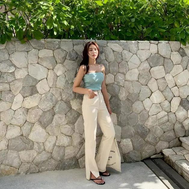 可能一提到吊带,大家就会觉得这种是不太好意思穿出门的。但是身材好的女孩子一定要尝试一下短吊带,因为没有尝试过真的不知道原来自己也能驾驭住这样的风格。一般短吊带的话,配裙子会比较少,配长阔腿裤会更多一点。短吊带配上长阔腿裤再搭上一个酷酷的小包包,整个给人的感觉都是酷的。