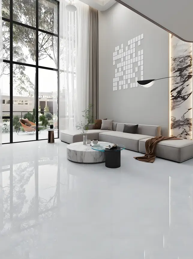 实用性更是亮光砖的强项。表面经抛光和超洁亮技术处理,致密光滑。酱油咖啡滴落,水渍脚印残留,往往一拖即净,省心省力。花色选择也极为广泛,从逼真的大理石纹、温润的木纹到雅致的布纹、灵动的玉石纹,轻松适配欧式、美式、轻奢等多种风格。