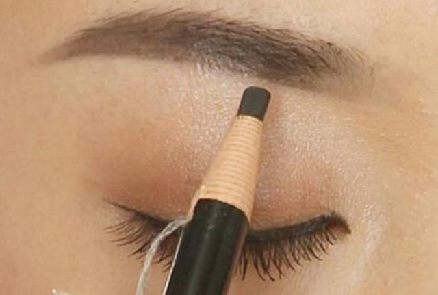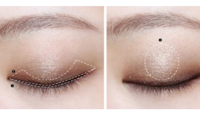 画眼线对于新手来说不提倡,浪费时间还易晕染。先细海绵沾取深色系眼影作为眼线使用,在上眼皮睫毛根与下眼皮的眼尾1/3描绘出线条。然后 蘸取棕色眼影,像要挡住双眼线条般在眼尾勾勒一个区域内,然后上眼皮上中间部位要珠光眼影打立体感哦!