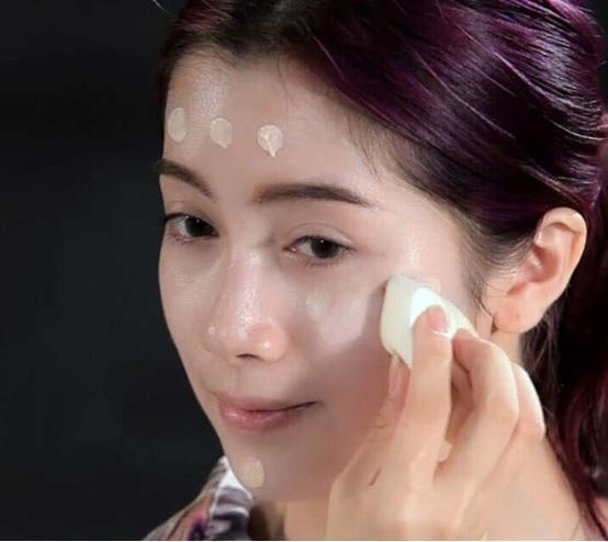 取出BB霜大概黄豆大小的量,先分五点均匀的点开,然后用海绵拍打涂抹就可以了。如果你用的是气垫BB霜,就更方便了,技巧是用力向内拍打,服帖度增强。