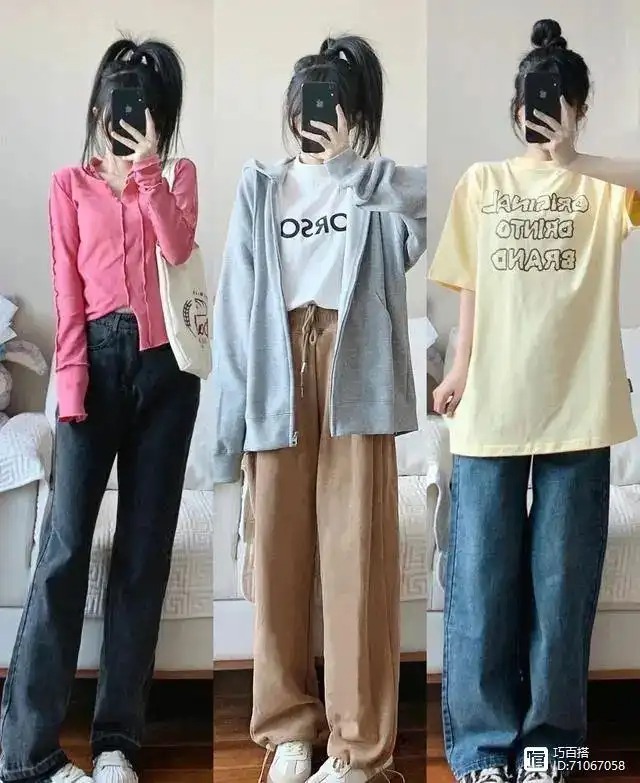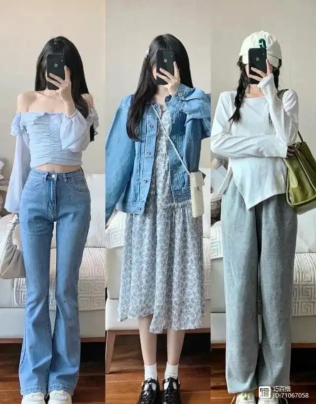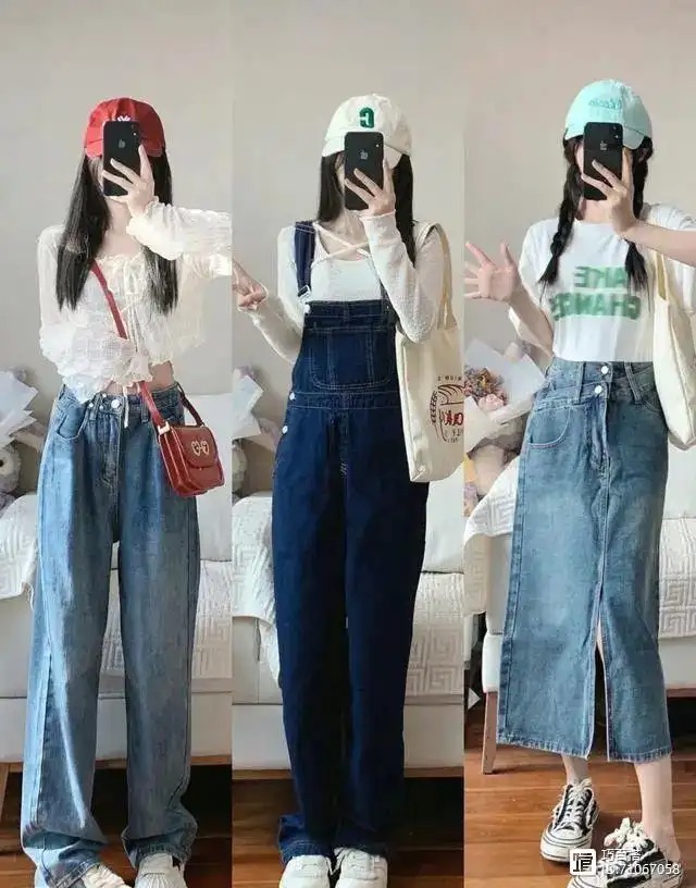 牛仔裤不仅颜色恰到好处,就连版型也是让人心动。尤其是那些直筒阔腿裤,既可以遮肉,又可以追赶潮流。