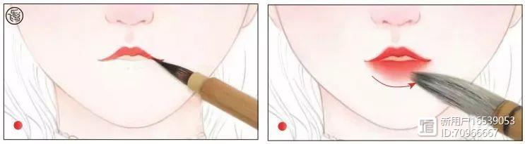 等待上唇干透后继续绘制下唇