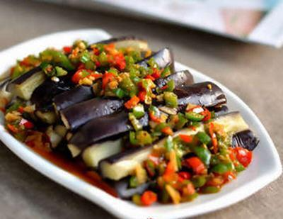 2. 把切好的茄子放置锅中蒸10分钟,取出控干水分,注意不要把茄子的汁液全部挤去,以免损失其中更多的营养素。