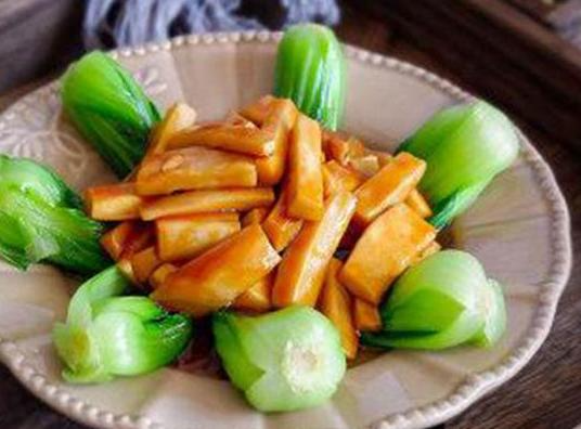 1.杏鲍菇洗净,切成小条,放入热油锅内略炸一下,取出放在厨房纸上吸走多余油份。油菜去根和老叶,洗净。2.锅中加入清水、盐、植物油煮沸。放入油菜焯至熟,捞出用冷开水过凉,沥干水备用;炒锅中先不开火,加入清水、蚝油、海鲜酱油、老抽、鸡精、白糖、精盐,调成酱汁搅拌均匀。