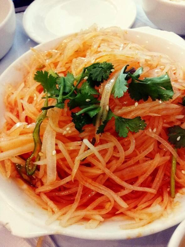 用料:土豆、胡萝卜、香菜、花椒、干红椒、沙拉油、盐、鸡精、香醋、砂糖、芝麻香油