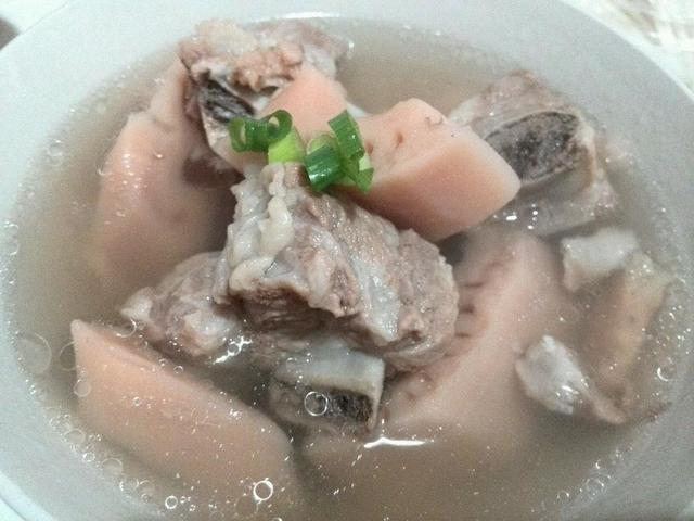 用料:排骨(约700g)、莲藕2节、生姜1块、盐、小葱