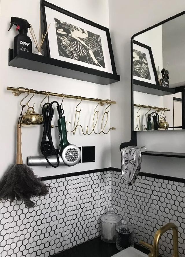 同时,如果你家卫生间的门是向卫生间里面开的话,在门后挂一些挂钩也可以作为收纳使用,挂一些比较轻的物品还是绰绰有余的。