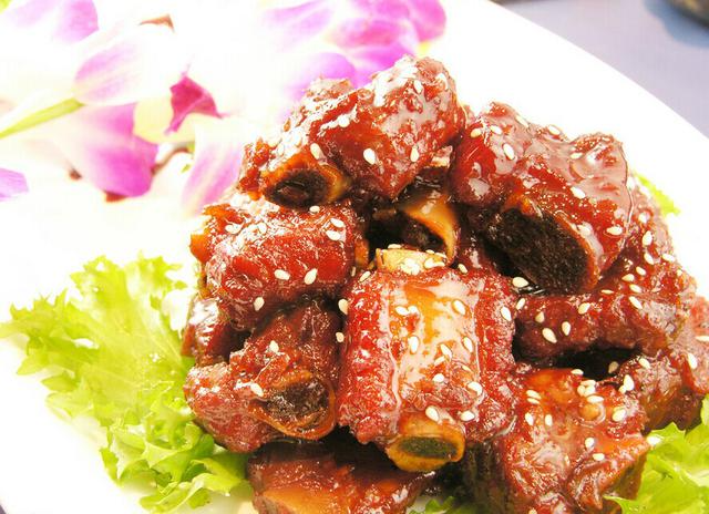 10.放入盐、冰糖或白糖50克,花椒粉少许,改小火慢炖,如果你觉得你做的排骨颜色不够深,可以滴几滴老抽