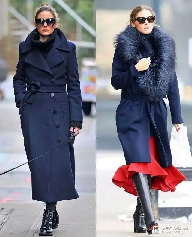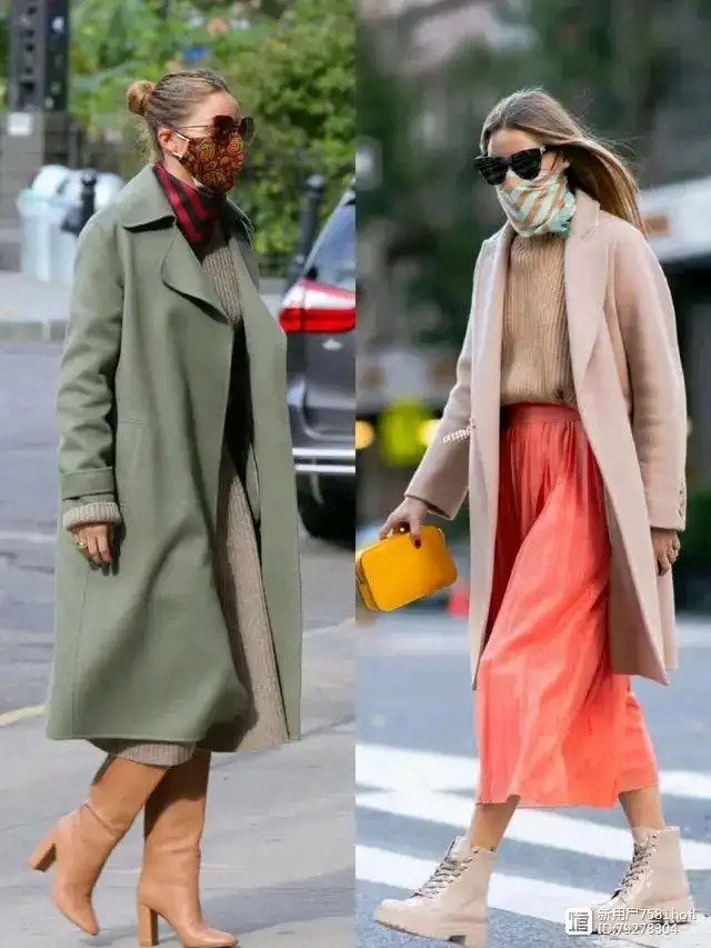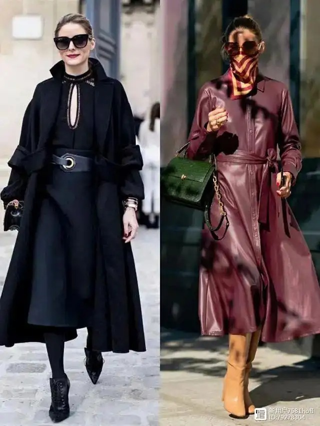 如果我们想穿时尚icon的魅力,我们也可以通过细节来升级衣服。而外套+靴子的重叠,外套+露出裙子的对比色穿着,以及风格特色的配饰,看起来更时尚。