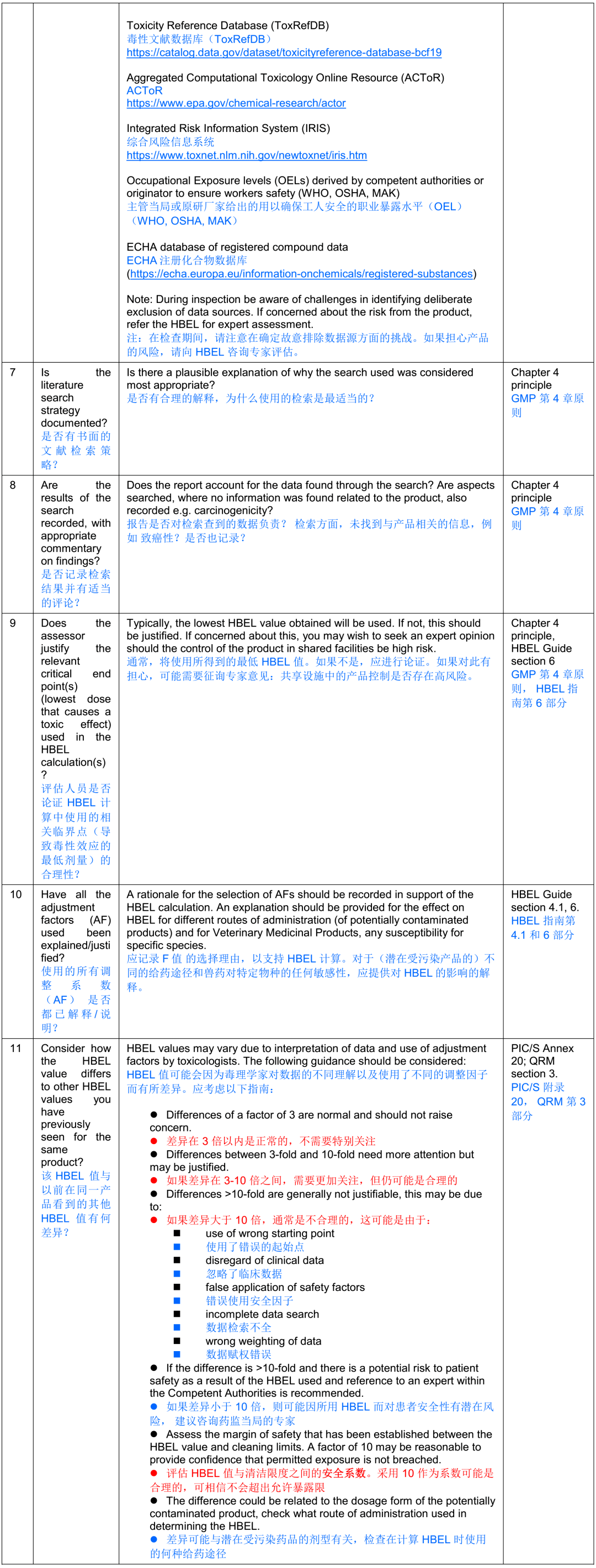 基于健康的暴露限值(HBEL)的评估及其在质量风险管理中的使用的检查备忘录