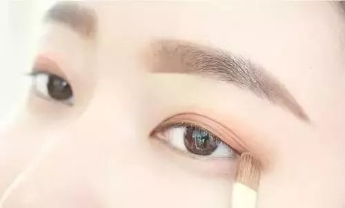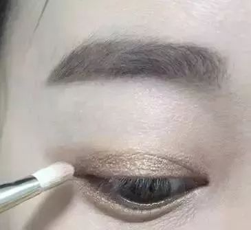 2、用浅棕色亚光眼影在上眼皮晕染。