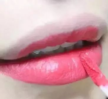 5、橘色系的口红从唇部中间开始向外涂抹。口红涂抹后气色会更好。